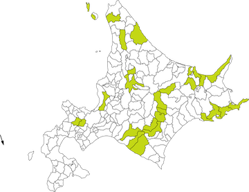 礼文町6、利尻町3;33;80、幌尻岳(新冠町、平取町)2;119;(E. parvus)36;120、静内町(ペテガリ)2;119;(E. parvus)36、網走市146、根室市2;25;35;(E. parvus)36;(牧の内)119、置戸町2、美幌町9;10;11;41;68、斜里町13、上士幌町14、旭川市24;37;46;73、和寒町24;46、豊富町27;(稚咲内)119、倶知安町28、京極町28、小清水町(北斗)45;119、歌登町52、浜中町56、中川町67、音更町70、釧路町72;74、芽室町84;85;93、帯広市87;89;97;116、士幌町88、当別町96、奥尻島沖105、厚岸町123
